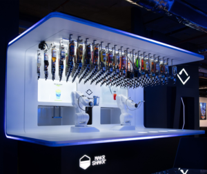 Makr Shakr Robot Bartender Makr Shakr, developed in Italy, operates in Las Vegas, London, and Singapore. It features two robotic arms that can mix cocktails using 158 bottles of spirits and juices suspended from the