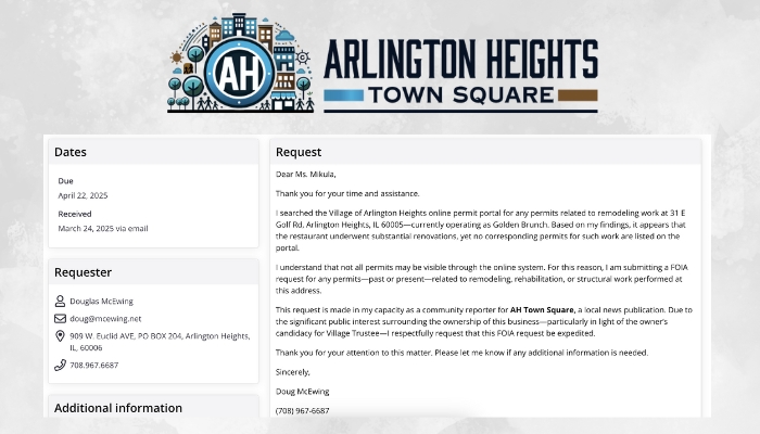 Arlington Heights, IL – On April 22, 2025, I received a letter from the Illinois Attorney General’s Public Access Bureau, authored by Caleb L. Briscoe,