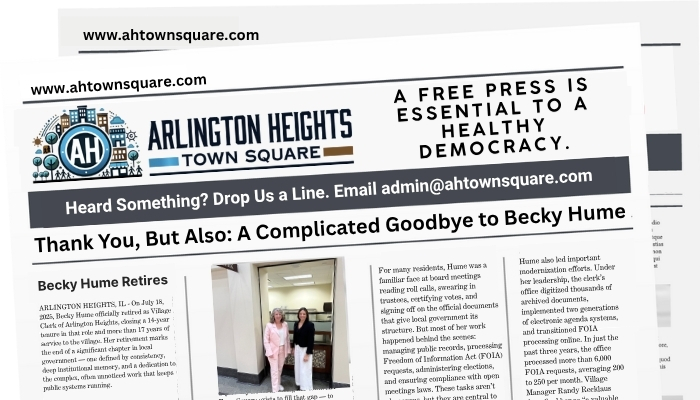 ARLINGTON HEIGHTS, IL — On July 18, 2025, Becky Hume officially retired as Village Clerk of Arlington Heights, concluding 14 years in that role and